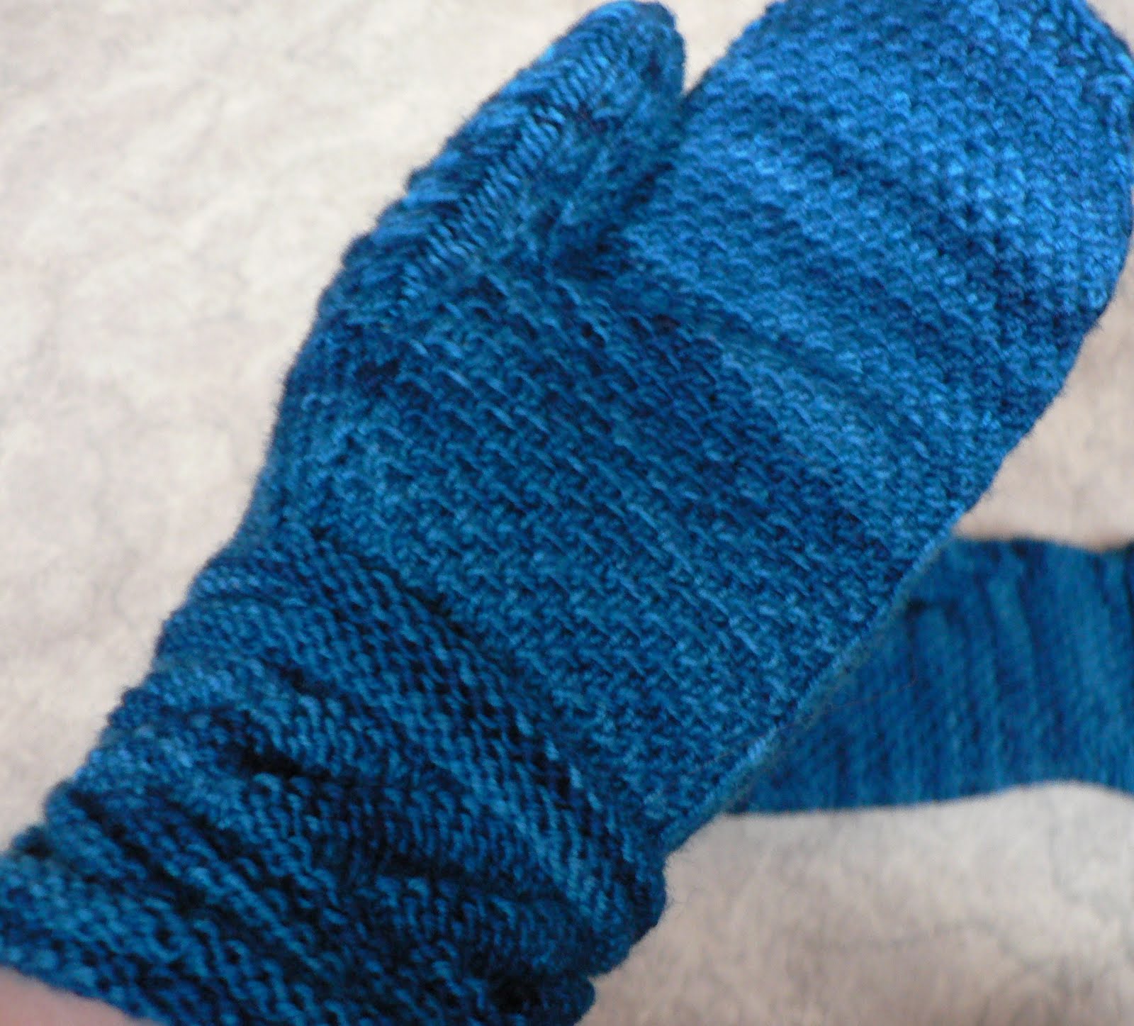 Aloitin perjantaina neulomaan miehelle lapasia omasta päästä, kun en löytänyt hyvää valmista ohjetta. Selailin The Knitters Biblea sillä silmällä ja valkkasin Basketweave mallineuleen. Hauska sattuma on, että uusin Ulla 3/09 on ilmestynyt viikonlopun aikana ja sieltä löytyy malli Korinpohja-kämmekkäät miehelle. :D